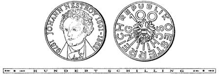 - 1. Die eine Seite hat das Kopfbild und die Umschrift „Johann Nestroy 1801-1862“ sowie die Jahreszahl 1976 zu tragen.