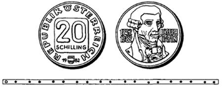 (2) Die andere Seite der Münze hat das Kopfbild von Joseph Haydn mit den Jahreszahlen „1732“ und „1982“ sowie die Inschrift „Joseph Haydn“ zu zeigen.