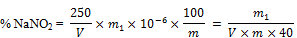 m1 | = | Natriumnitritgehalt in Mikrogramm, ermittelt nach 6.9, |