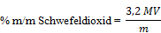 Berechne den Gehalt der Probe an Sulfit bzw. Bisulfit in Masseprozent nach der Formel: