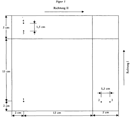 - 6.4.4. Den unter 6.4.3 beschriebenen Vorgang bei den Startpunkten 4 und 5 (Figur 1) wiederholen und die Platte bis zur Durchführung der Chromatographie in Stickstoffatmosphäre aufbewahren.