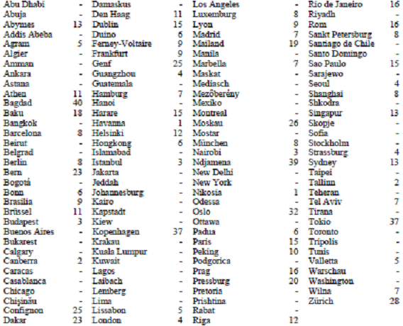 Für nachstehend angeführte Dienstorte im Ausland wird der Hundertsatz für die Bemessung von Kaufkraftausgleichszulagen nach § 21b Abs. 1 GehG für den Monat Jänner 2010 wie folgt festgesetzt: