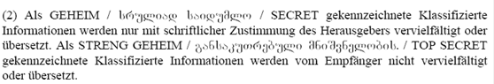 (1) Die Vervielfältigung und Übersetzung Klassifizierter Informationen kann vom Herausgeber eingeschränkt oder ausgeschlossen werden.