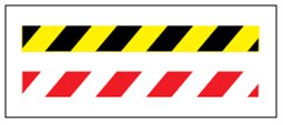 - Die Streifen (schwarz/gelb oder rot/weiß) sind in einem Neigungswinkel von etwa 45 ° anzuordnen und müssen in etwa die gleiche Breite aufweisen.