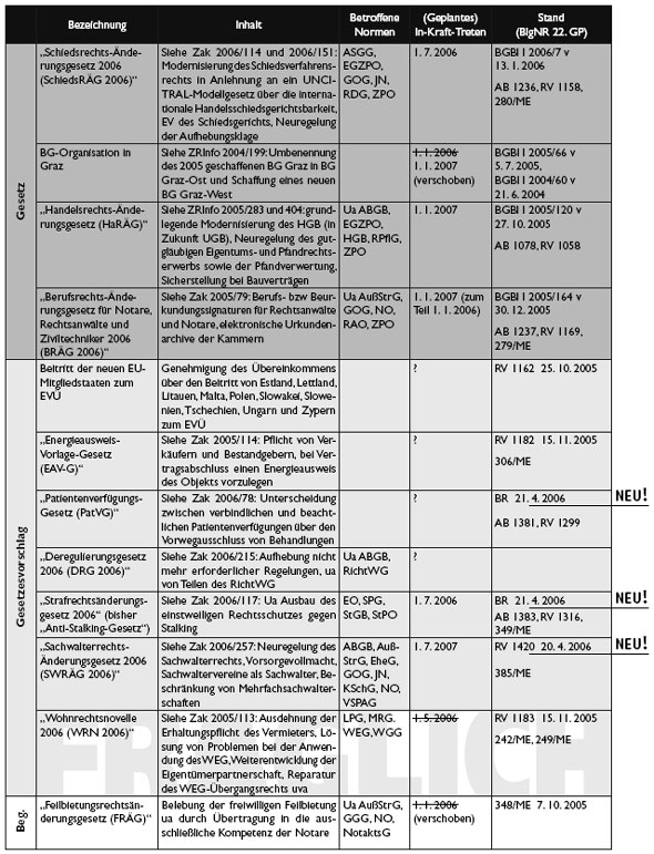 Aktuelle Gesetzesvorhaben