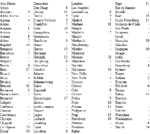 Für nachstehend angeführte Dienstorte im Ausland wird der Hundertsatz für die Bemessung von Kaufkraftausgleichszulagen nach § 21b Abs. 1 GehG für den Monat Jänner 2009 wie folgt festgesetzt: