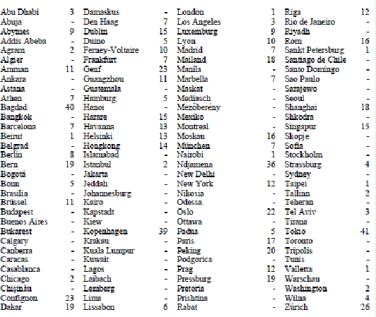 Für nachstehend angeführte Dienstorte im Ausland wird der Hundertsatz für die Bemessung von Kaufkraftausgleichszulagen nach § 21b Abs. 1 GehG für den Monat Mai 2009 wie folgt festgesetzt: