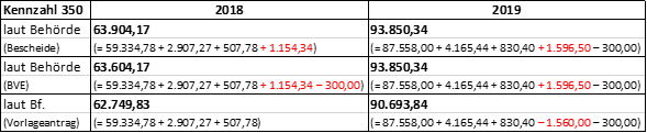 Die belangte Behörde hat den auf den Lohnzetteln ausgewiesenen Bruttobezügen die Arbeitnehmerbeiträge zur Pensionskasse (2018: 1.154,30 € / 2019: 1.596,50 €) hinzugerechnet. Dabei ist der Behörde offenkundig ein Rechen- bzw. Denkfehler unterlaufen, da diese Beträge - wie anhand der vorstehenden tabellarischen Aufstellung zweifelsfrei erkennbar ist - bereits in den auf den Lohnzetteln ausgewiesenen und auch von der belangten Behörde als Basis herangezogenen Bruttobezügen enthalten waren. Die von der Behörde vorgenommene Hinzurechnung würde zu einer im Gesetz nicht vorgesehenen doppelten Besteuerung dieser Beträge führen.