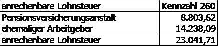 Die anrechenbare Lohnsteuer setzte sich wie folgt zusammen:
