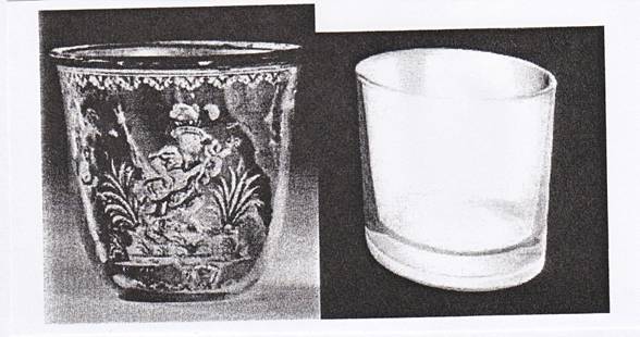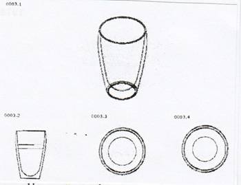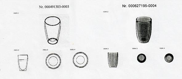 Diesem Gemeinschaftsgeschmacksmuster hält die Beklagte ein altes französisches Weinprobenglas und einen nach ihrer Behauptung seit Jahrzehnten erhältlichen Plastikbecher folgenden Aussehens (Beil. /10 und ./11), sowie weiters das bereits oben dargestellte Gemeinschaftsgeschmacksmuster 136445‑0007 mit Priorität vom 6. 2. 2004 und das Patent aus dem Jahr 1987 entgegen.