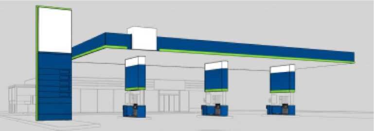 Die Marke besteht aus einer Kombination der Farben Blau, Grün und Weiß zur Kennzeichnung von Tankstellen. Die grau eingefärbten Teile der Darstellung sind nicht Teil der Marke sondern dienen der Veranschaulichung; in eventu: Die Marke besteht aus einer Kombination der Farben Blau (RAL 5010), Grün (RAL 6018) und Weiß (RAL 9010) zur Kennzeichnung von Tankstellen. Die grau eingefärbten Teile der Darstellung sind nicht Teil der Marke, sondern dienen nur der Veranschaulichung.