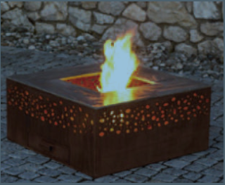 Die klagende Partei ist Inhaberin des im Folgenden dargestellten Geschmacksmusters einer quadratischen Feuerschale, wobei sich der Schutz unter der Nummer DM/084-855 auf das Gebiet der Europäischen Union erstreckt: