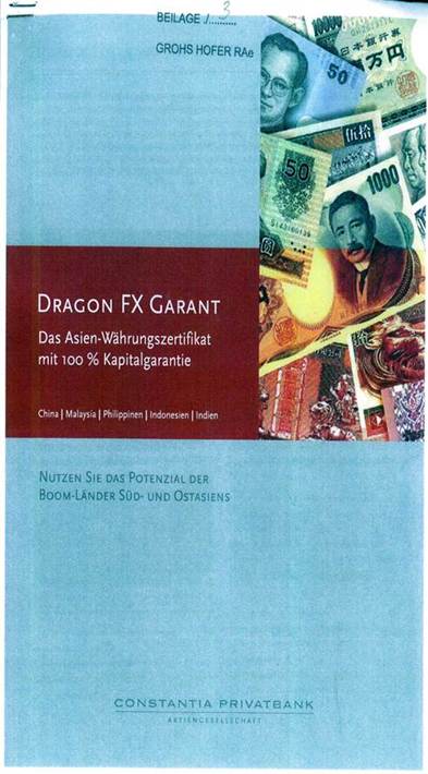 Die Kläger, die zuvor nur in Sparbücher und ähnliche Produkte veranlagt hatten, standen seit 2005 in Geschäftsbeziehung zur Beraterin. Die erste Anlage augrund deren Empfehlung bezog sich auf „Immofinanz“ und betraf einen investierten Betrag von etwa 5.000 bis 10.000 EUR. Etwa ein Jahr danach sprach ein Mitarbeiter der Beraterin die Kläger darauf an, ob sie wieder veranlagen möchten, und übergab ihnen die beschriebene Werbebroschüre, die sich die Kläger oberflächlich durchsahen. Was ein Emittent ist, wussten die Kläger nicht und hinterfragten dies auch nicht. Im Prospekt sahen sie den Hinweis, dass das Produkt „in Partnerschaft mit Lehman Brothers“ begeben wird, doch hatten sie keine Vorstellung, worin die Partnerschaft besteht; dieser Umstand hatte für sie zu diesem Zeitpunkt auch keine Bedeutung. Wie das Produkt genau funktioniert und wie die angelegten Gelder verwendet würden, war den Klägern nicht klar, und sie interessierten sich nicht näher dafür. Sie dachten, dass wahrscheinlich in den Währungen spekuliert würde und sich ein Gewinn für sie ergäbe, wenn die Währungen am Ende der Laufzeit „gestiegen“ seien. Die Kläger gingen nach Durchsicht der Werbebroschüre davon aus, dass es sich um eine sichere Anlage handle und dass sie im schlimmsten Fall keine Gewinne erzielen würden. An der Kapitalgarantie war ihnen wesentlich, dass sie damit auch für den Fall, dass sich die asiatischen Währungen ungünstig entwickeln, keinen Verlust übernehmen mussten. Über einen Verlust des Kapitals durch Insolvenz machten sich die Kläger keine Gedanken und wurden von der Beraterin auf diese Möglichkeit auch nicht hingewiesen; deren Mitarbeiter erklärte, es sei ein sicheres Produkt mit Kapitalgarantie, man könne mit 5-7 % Ertrag pro Jahr rechnen.