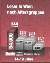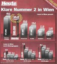 „1. Die beklagte Partei ist ab sofort schuldig, es im geschäftlichen Verkehr zu unterlassen, für 'Heute' einen Reichweitenvorsprung gegenüber periodischen Druckwerken von Mitbewerbern zu behaupten, zu veröffentlichen und/oder zu verbreiten, wenn dieser nicht außerhalb der jeweils maßgeblichen statistischen Schwankungsbreite liegt und auf diesen Umstand nicht gleichermaßen auffällig hingewiesen wird, insbesondere dem Druckwerk 'Heute' unter Verweis auf die Media-Analyse 08/09 in der Kategorie der Leser in Wien, Altersgruppe der 30‑ bis 39‑jährigen, ohne jegliche Aufklärung über die fehlende statistische Signifikanz einen Vorsprung gegenüber der Tageszeitung 'Kronen Zeitung' zuzuschreiben oder zuschreiben zu lassen.