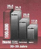 1. im geschäftlichen Verkehr für „Heute“ einen Reichweitenvorsprung gegenüber periodischen Druckwerken von Mitbewerbern zu behaupten, zu veröffentlichen und/oder zu verbreiten, wenn dieser nicht außerhalb der jeweils maßgeblichen statistischen Schwankungsbreite liegt und auf diesen Umstand nicht gleichermaßen auffällig hingewiesen wird, insbesondere dem Druckwerk „Heute“ unter Verweis auf die Media‑Analyse 08/09 in der Kategorie der Leser in Wien, Altersgruppe der 30‑ bis 39‑jährigen, ohne jegliche Aufklärung über die fehlende statistische Signifikanz einen Vorsprung gegenüber der Tageszeitung „Kronen Zeitung“ zuzuschreiben oder zuschreiben zu lassen;
