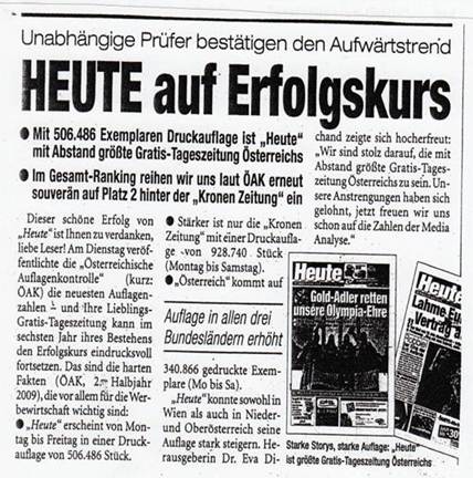 Die „K*****“ und „Ö*****“ werden in der Kategorie „Tageszeitungen‑Kauf“ ausgewiesen. In der Auflagenliste zweites Halbjahr 2009 wird der Durchschnittswert der Druckauflage von Montag bis Samstag für „Ö*****“ mit 340.866 sowie von Montag bis Freitag mit 370.960 angegeben. In der Kategorie „Tageszeitungen‑Gratis“ wird nur „H*****“ ausgewiesen. Die ÖAK weist kein „Gesamt‑Ranking“ aus.