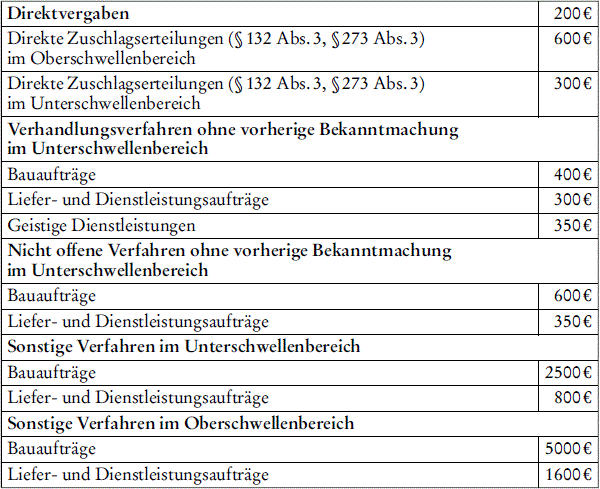 Gebühren für die Inanspruchnahme des Bundesvergabeamtes