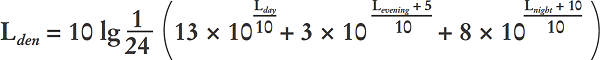 (1) Der Lden (Tag-Abend-Nacht-Lärmindex) in Dezibel (dB) wird mit folgender Gleichung berechnet: