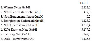 (2) Für die Netznutzung der Anlagen der Netzebene 3 des Übertragungsnetzes sind folgende Nettozahlungen, die Jahresbeträge (in TEUR) darstellen, in zwölf gleichen Teilbeträgen monatlich an die Austrian Power Grid AG zu leisten.