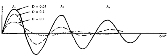 Gedämpfte Sinuskurve bei einer kurzzeitigen freien Schwingung