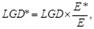 (2) Bei Kreditinstituten, die zur Berechnung der gewichteten Forderungsbeträge den auf internen Ratings basierenden Ansatz verwenden, entspricht zu diesem Zweck der LGD die effektive Verlustquote bei Ausfall (LGD*), die nach folgender Formel berechnet wird: