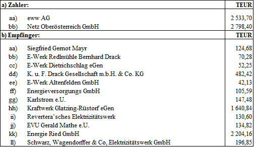 Die Ausgleichszahlungen werden als Nettozahlungen in TEUR, die Jahresbeträge darstellen, festgelegt und sind in pro festgelegtem Zeitraum jeweils gleichen Teilbeträgen monatlich wie folgt zu leisten: