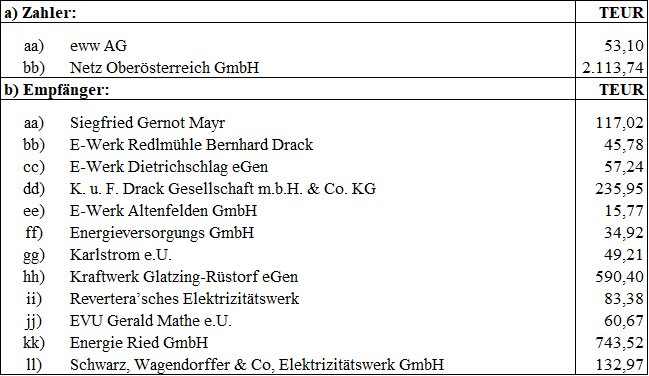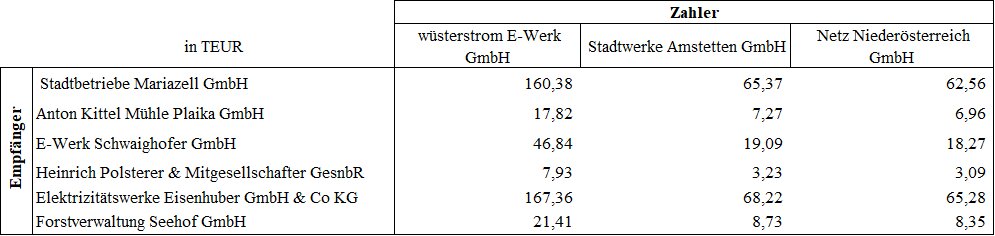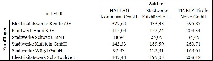 Die Ausgleichszahlungen werden als Nettozahlungen in TEUR, die Jahresbeträge darstellen, festgelegt und sind in pro festgelegtem Zeitraum jeweils gleichen Teilbeträgen monatlich wie folgt zu leisten: