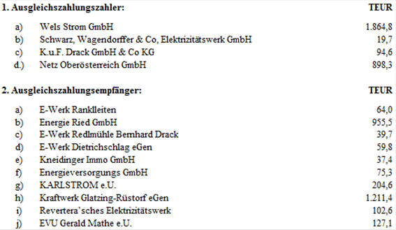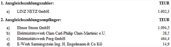 (1) Die Ausgleichszahlungen werden als Nettozahlungen in TEUR, die Jahresbeträge darstellen, festgelegt und sind in zwölf gleichen Teilbeträgen monatlich wie folgt zu leisten: