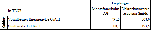 (5) Für den Netzbereich Vorarlberg werden folgende Ausgleichszahlungen festgelegt, wobei die Zahlungen zwischen den einzelnen Netzbetreibern gemäß folgender Aufstellung zu leisten sind: