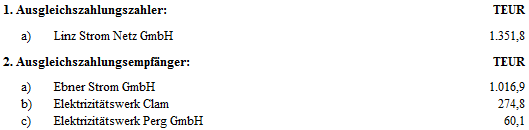 (3) Für den Netzbereich Steiermark werden folgende Ausgleichszahlungen festgelegt, wobei die Zahlungen zwischen den einzelnen Netzbetreibern gemäß folgender Aufstellung zu leisten sind: