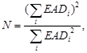 wobei EADi die Forderungshöhe sämtlicher auf den i-ten Schuldner bezogener Forderungen ist. Im Falle einer erneuten Verbriefung von Verbriefungspositionen ist auf die Anzahl der Verbriefungspositionen in dem Pool abzustellen. Ist der Anteil am Portfolio im Zusammenhang mit der größten Forderung, C1, verfügbar, kann N als 1/C1 berechnet werden.