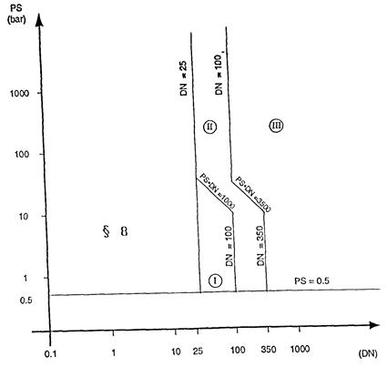 Als Ausnahme hiervon sind Rohrleitungen, die für instabile Gase bestimmt sind und nach Diagramm 6 unter die Kategorie I oder II fallen, in die Kategorie III einzustufen.