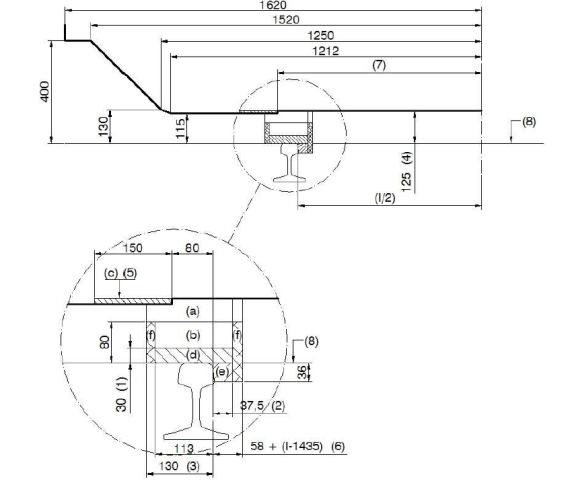 (d) Bereich für Räder und für Bauteile, die mit der Schiene in Kontakt kommen