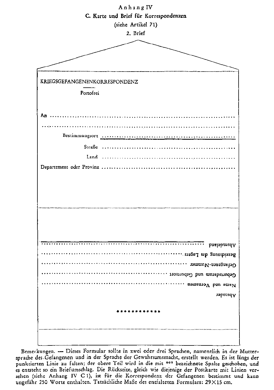 Anlage 4 Genfer Abkommen über die Behandlung der Kriegsgefangenen