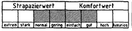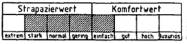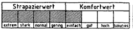 Die Kennzeichnung erfolgt in der Weise, daß ausgehend von der Mitte des Balkens bis hin zu dem jeweils ermittelten Strapazier- und Komfortwert alle Felder schraffiert werden.
