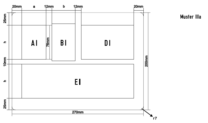 b: Breite des Feldes B (mm) (Heißprägefläche) |
