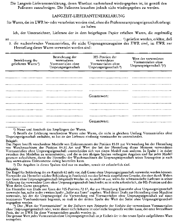 LANGZEIT-LIEFERANTENERKLÄRUNG