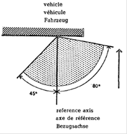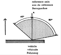 1. *) Die in den Zeichnungen angegebenen Winkel entsprechen Geräten. die auf der rechten Seite des Fahrzeuges angebracht werden. Die Pfeile in diesen Skizzen zeigen nach vorn.