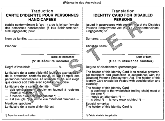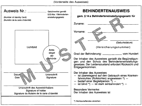 Anlage Ausstellung von Lichtbildausweisen an begünstigte Behinderte