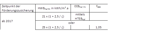 (1) Für die umfassende energetische Sanierung von Wohnhäusern werden besondere Förderanreize vorgesehen, soweit die energiebezogenen Zielwertanforderungen gemäß unten stehender Tabelle eingehalten werden: