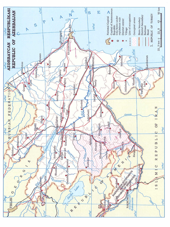 Die Republik Aserbaidschan erklärt, dass sie die Durchführung der Bestimmungen des Übereinkommens in ihren von der Republik Armenien besetzten Gebieten (der Region Berg-Karabach der Republik Aserbaidschan und den sieben diese Region umgebenden Provinzen) erst dann gewährleisten kann, wenn diese Gebiete von der Besatzung befreit und die Folgen dieser Besatzung vollständig beseitigt sind (die schematische Karte der besetzten Gebiete der Republik Aserbaidschan ist beigefügt).