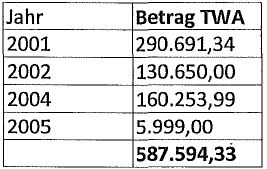 Das geprüfte Unternehmen führte zum 31.12.2004 eine 100% Wertberichtigung dieser "Barvorlagen" durch, behandelte die Wertberichtigung als Teilwertabschreibung auf eine Beteiligung und verteilte die TWA entsprechend §12 Abs. 3 Z 2 KStG auf 7 Jahre. Ein Nachweis des Abschreibungsbedarfs erfolgte übrigens trotz mehrmaliger Aufforderung nicht.