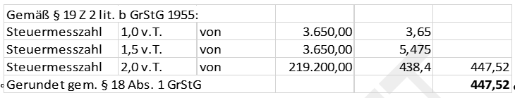 Es ergibt sich somit folgende Berechnung des Grundsteuermessbetrages: