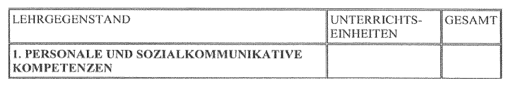 Vorgelegt wurde eine Stundentafel betreffend die theoretische Ausbildung und das Berufspraktikum, wobei von 2.612 Lerneinheiten 468 Unterrichtseinheiten auf das Berufspraktikum entfallen sollten.