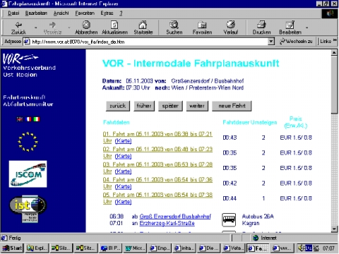 Die Verbindungen zwischen Probstdorf bzw. Groß Enzersdorf einerseits und Wien (Veterinärmedizinische Universität bzw. Bahnhof Wien Nord) andererseits wurden an Hand der elektronischen Fahrplanauskunft www.vor.at festgestellt. Die Fahrplanauskunft bezieht sich zwar auf das Jahr 2003; Hinweise dafür, dass im Jahr 2001 wesentlich andere Verhältnisse bestanden haben, sind freilich nicht ersichtlich. Eine derartige Änderung der Verhältnisse wird auch nicht behauptet.