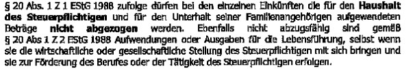 Gemäß § 20 Abs 1 Z 1 EStG 1988 dürfen die für den Haushalt des Steuerpflichtigen und für den Unterhalt seiner Familienangehörigen aufgewendeten Beträge bei den einzelnen Einkünften nicht abgezogen werden.