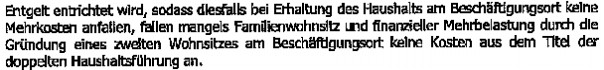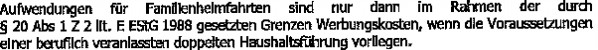 Nach geltender Rechtslage sind die Ausgaben für Fahrten vom Wohnsitz am Arbeitsplatz zur Familie (die sog. "Familienheimfahrten") und die Ausgaben für eine doppelte Haushaltsführung Werbungskosten aus nichtselbständiger Arbeit im Sinne des § 16 Abs 1 EStG 1988, wenn eine beruflich veranlasste doppelte Haushaltsführung vorliegt.