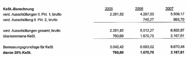 Die KeSt. von diesen verd. Ausschüttungen It. BP wird von der GmbH. übernommen.