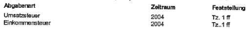 Wiederaufnahme des Verfahrens gem. § 303 Abs. 4 BAO Hinsichtlich nachstehend angeführter Abgabenarten und Zeiträume wurden Feststellungen getroffen, die eine Wiederaufnahme des Verfahrens gem. § 303 Abs. 4 BAO erforderlich machen: