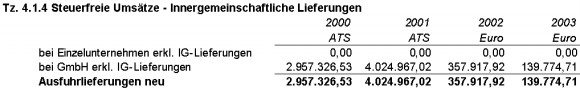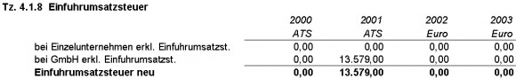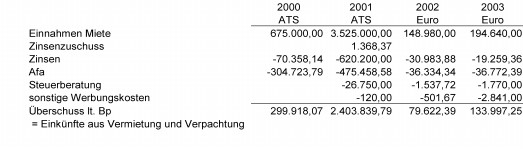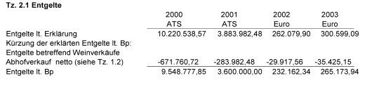 2000 ATS 0,00; 2001 ATS 0,00; 2002 EUR 0,00 und 2003 EUR 0,00.
